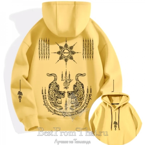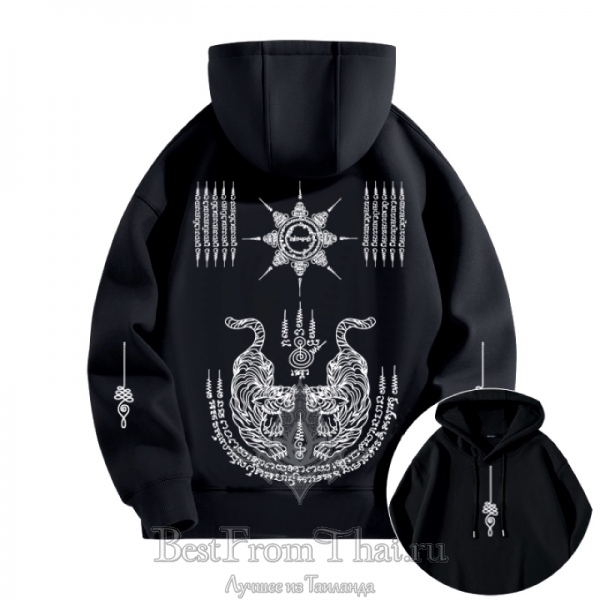 Толстовка с Сак Янт 2 тигра. Этот Сак Янт наносят для защиты от пуль и ножа, от нападений и физического насилия.