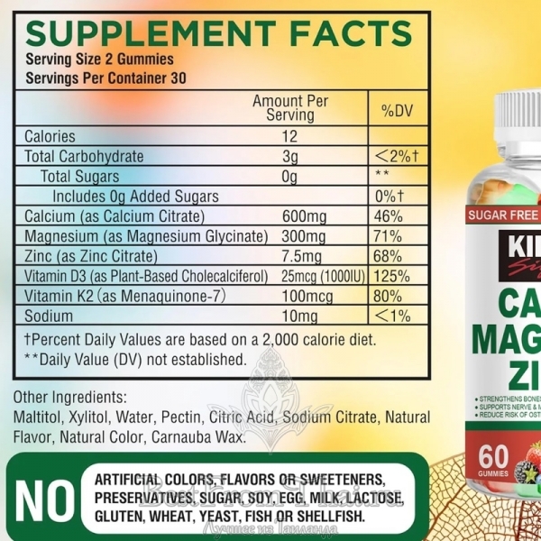 Высокая эффективность и улучшенное усвоение: высокоэффективные жевательные конфеты с высоким содержанием кальция, магния и цинка на порцию, что делает их полезными для всех.