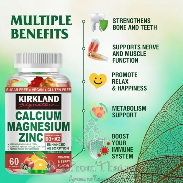 Жевательные конфеты KIRKLAND с кальцием, магнием и цинком укрепляют кости и зубы, способствуют росту и развитию, поддерживают общее состояние здоровья.